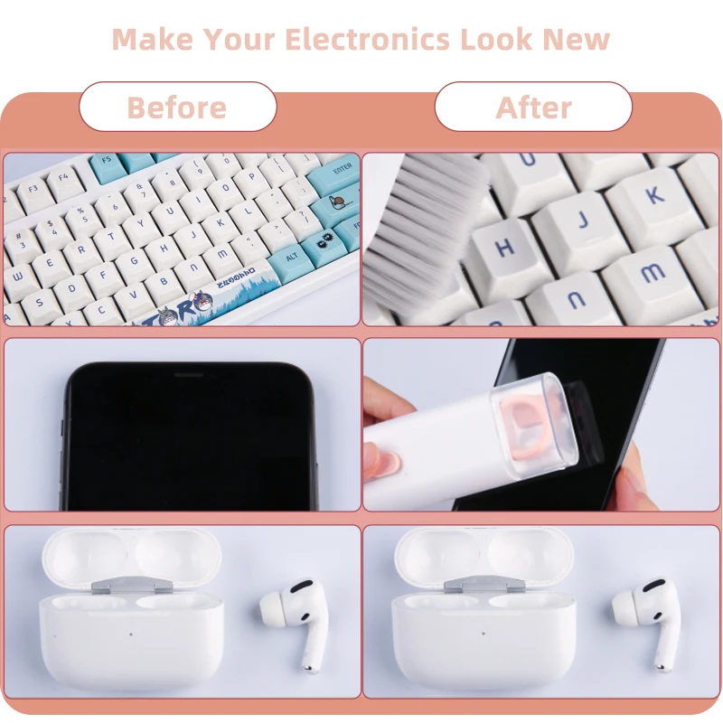 Laptop / Computer / Tablet / Keyboard Cleaning: Slide the large high-density soft brush to clean the dust off the computer, laptop, tablet and keyboard. And you can also use the key puller to pull up the keys of the mechanical keyboard to do. a deep cleaning.