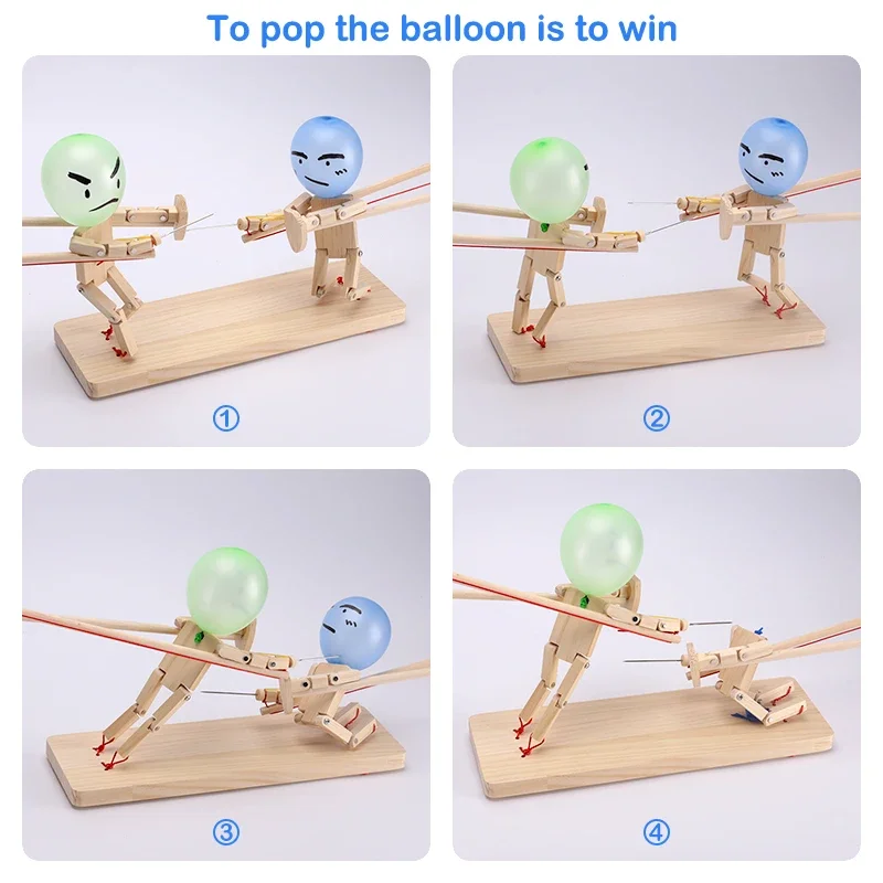 1. An innovative fast-paced wooden robot battle game designed for two players