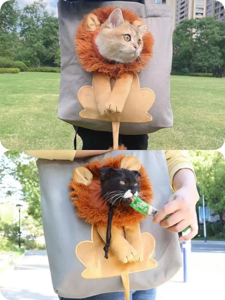 3: Pet Cat Carrier Bag Lion-shaped Pet Shoulder Bag Can Be Exposed Pet Canvas Bag For Cats And Small Dogs Breathable Tote Bag