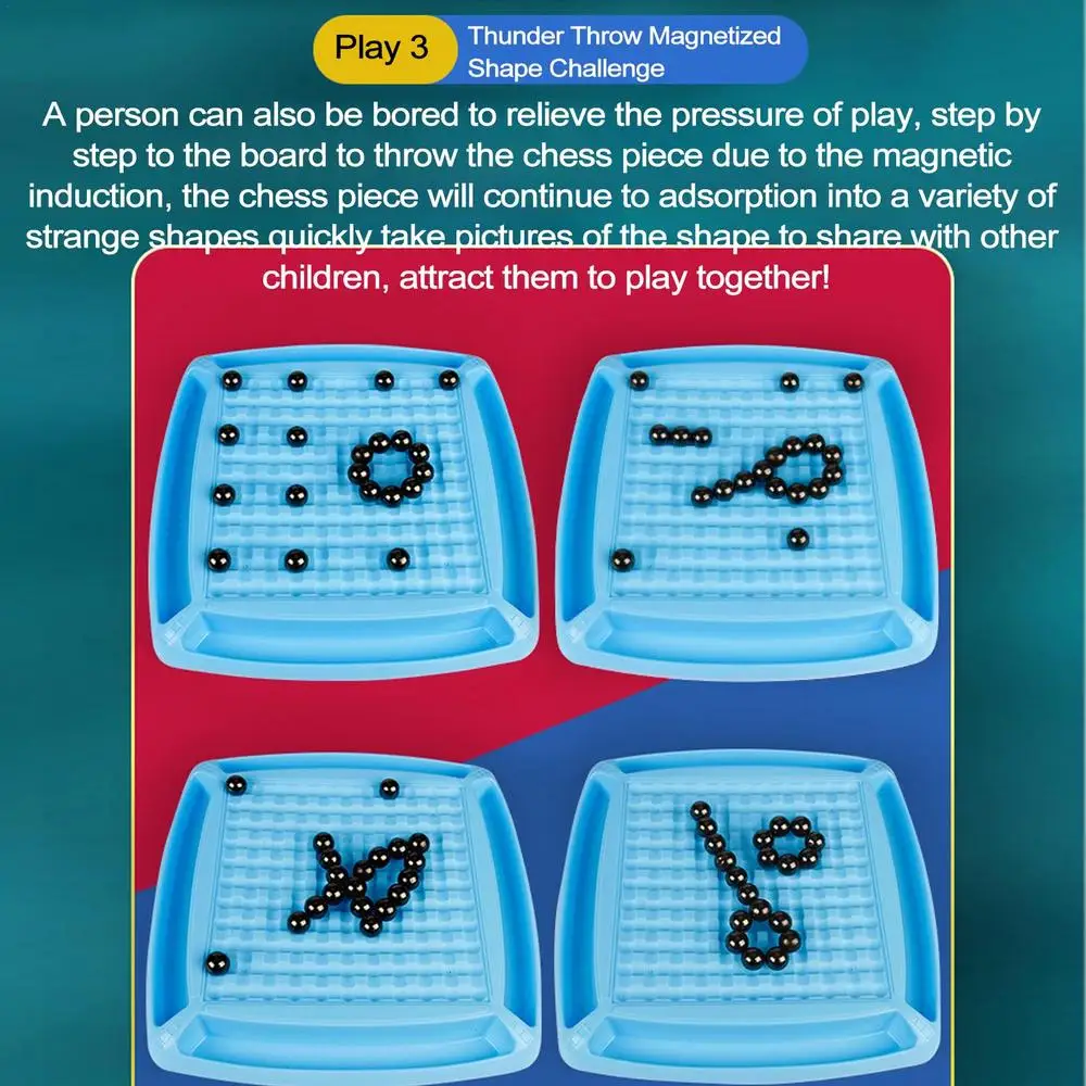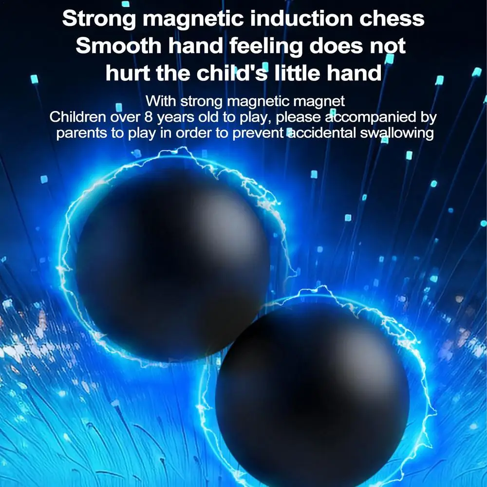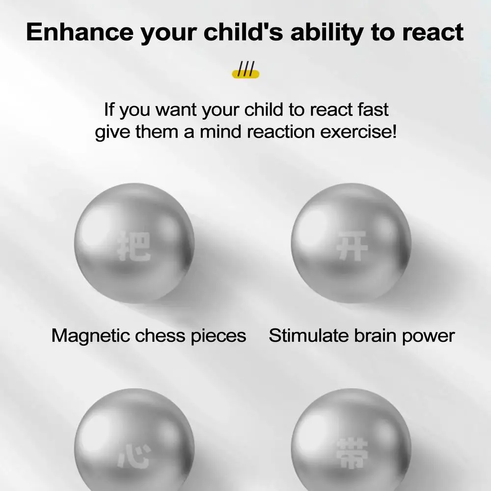 1.Logical Thinking: This magnetic effect chess is a fun and challenging game that exercises children's logical thinking ability. It allows them to learn strategies and planning in the game while enjoying the magnetic attraction and repulsion of the chess pieces.